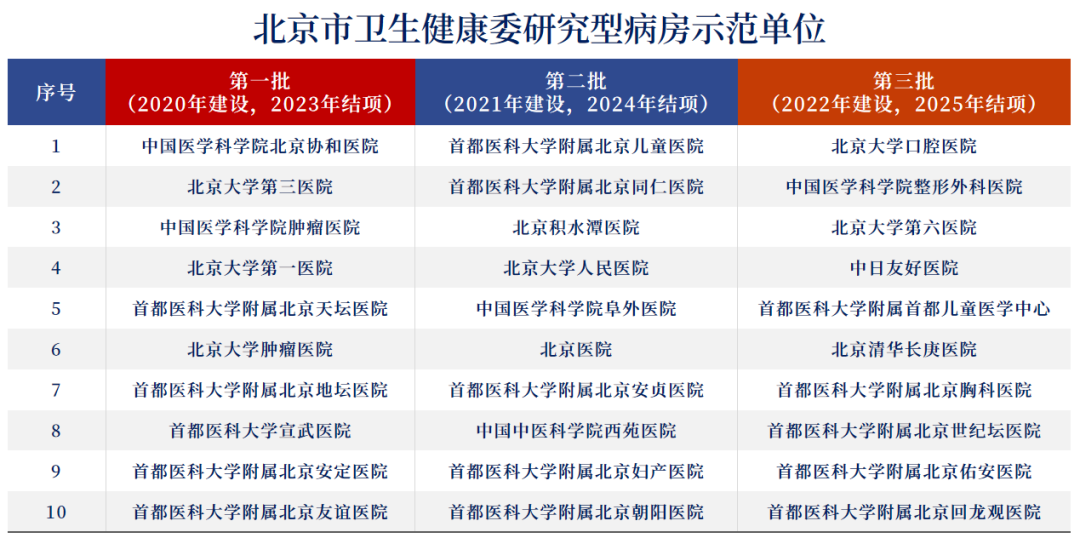 为落实《北京市加快医药健康协同创新行动计划》等文件要求,系统性提升临床研究对医药健康产业创新的支撑能力,自2020年起,北京市卫生健康委分三批遴选并建设了30家研究型病房示范建设单位(以下简称“示范单位”),该布局旨在充分整合首都丰富的临床与科研资源,系统提升医疗机构的临床研究承接与实施能力,吸引和开展高水平临床试验,探索诊疗新技术与新方案。